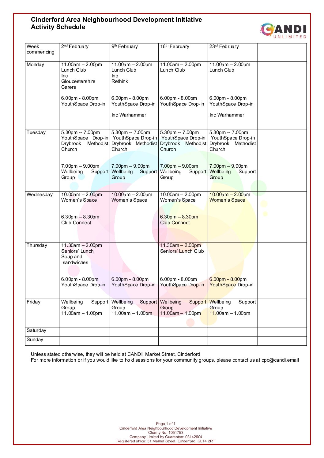 At CANDI, our mission is to promote community wellbeing in the Forest of Dean by providing a safe, welcoming, and supportive space for individuals and groups.